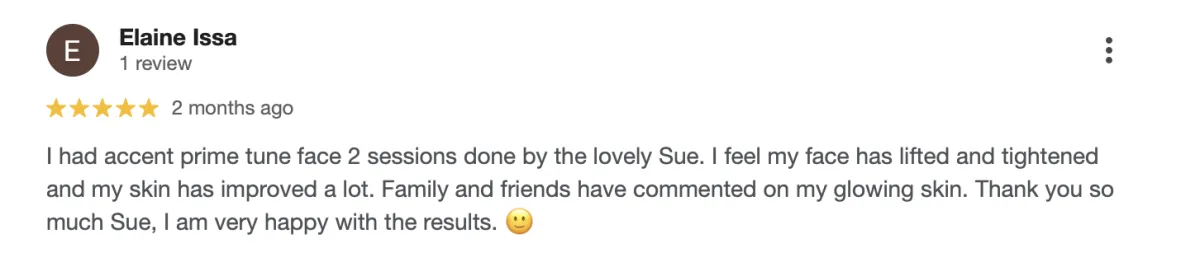 Each Accent Prime session typically takes between 30 to 60 minutes, depending on the area being treated. Most people need a course of 4–6 treatments for the best results, spaced about 1–2 weeks apart. Results can last several months to a few years, especially when combined with healthy lifestyle habits and occasional maintenance sessions.